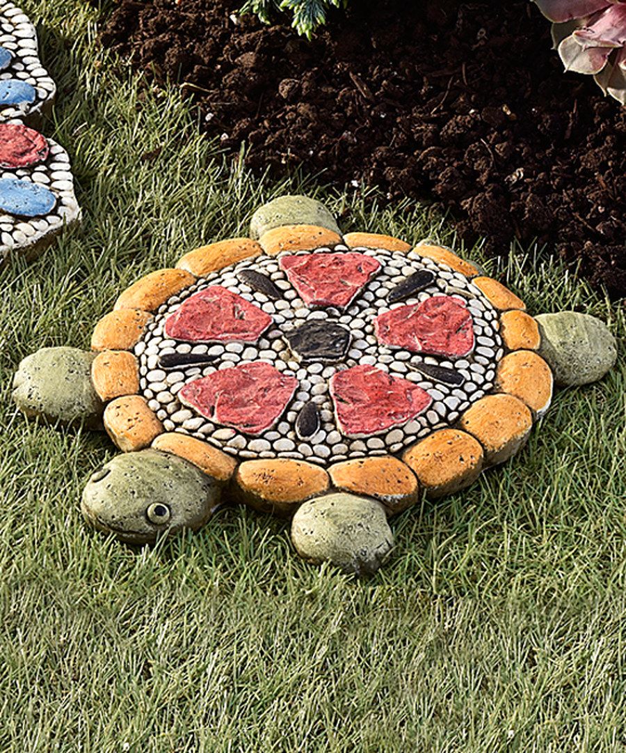 Для начала сделайте отдельные шаговые плиты (как на картинке ниже). Формой для «выпекания» таких гравийных «блинчиков» послужит большой поддон для горшков.