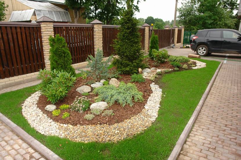 Он гармонирует с любыми растениями, деревьями и цветами. С помощью этого материала можно реализовать множество красивых и практичных идей благоустройства придомовой территории.