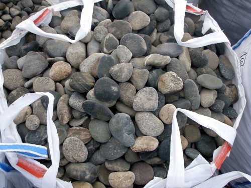 Плоская галька фракции 50-100 мм: удобный и недорогой декоративный материал.