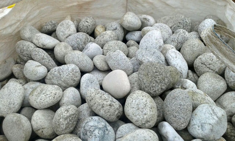 Галька горная речная окатанная (серо-белая, "страусиные яйца")