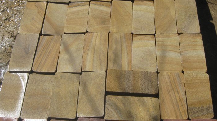Kamenclub.ru: Песчаник пластушка желтый с рисунком (7-15 см)  купить в Перми плитняк - пластушка - бут желтый песчаник 10200 руб/м3   фото КАМЕНЬ КЛУБ