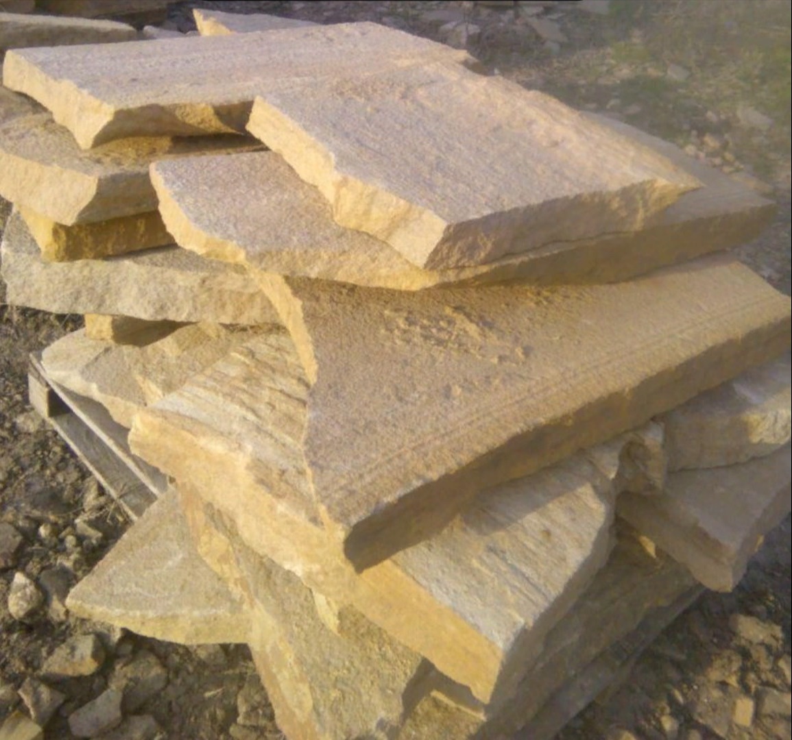 • Kamenclub.ru: Форматный камень (плаха) пошаговая дорожка от 70-150 см (4 -12 см)  купить в Перми плитняк  форматный плаха желтый песчаник 9 000 руб/т   фото КАМЕНЬ КЛУБ