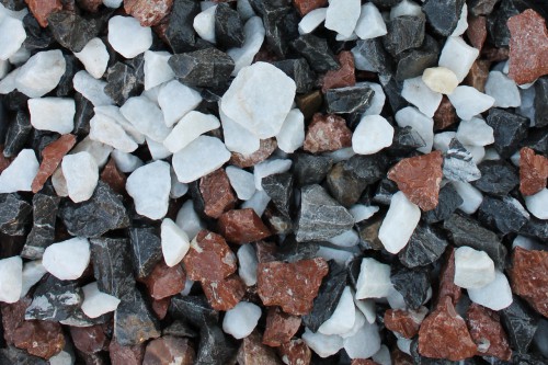 Kamenclub.ru: мраморная крошка (щебень крошка микс : белый-черный-розовый) фр. 3-5 мм. купить в Перми - заказать природный камень по низким ценам оптом с доставкой от производителя - kamenclub.ru