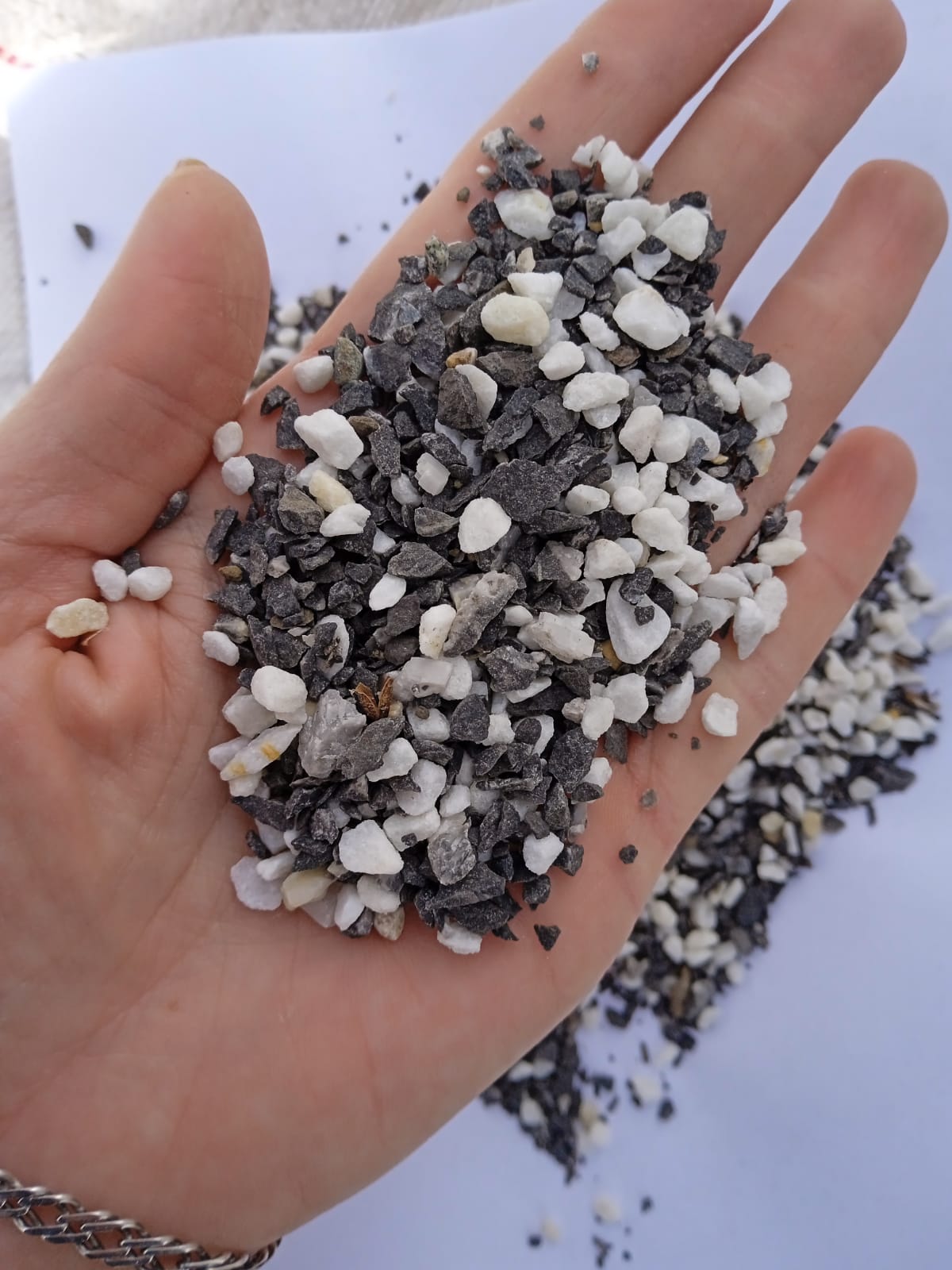 • Мраморная крошка (щебень крошка микс : белый-черный-розовый) фр. 3-5 мм.