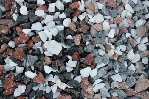 Kamenclub.ru: мраморная крошка (щебень крошка микс : белый-черный-розовый) фр. 20-40 мм. купить в Перми - заказать природный камень по низким ценам оптом с доставкой от производителя - kamenclub.ru