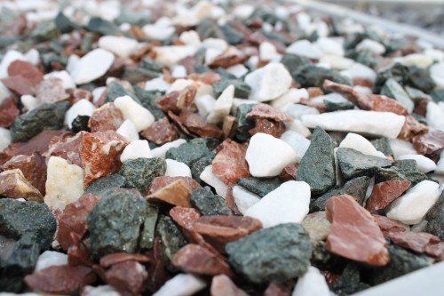 Kamenclub.ru: мраморная крошка (щебень крошка микс: белый-зеленый-розовый) фр. 10-20 мм. купить в Перми - заказать природный камень по низким ценам оптом с доставкой от производителя - kamenclub.ru
