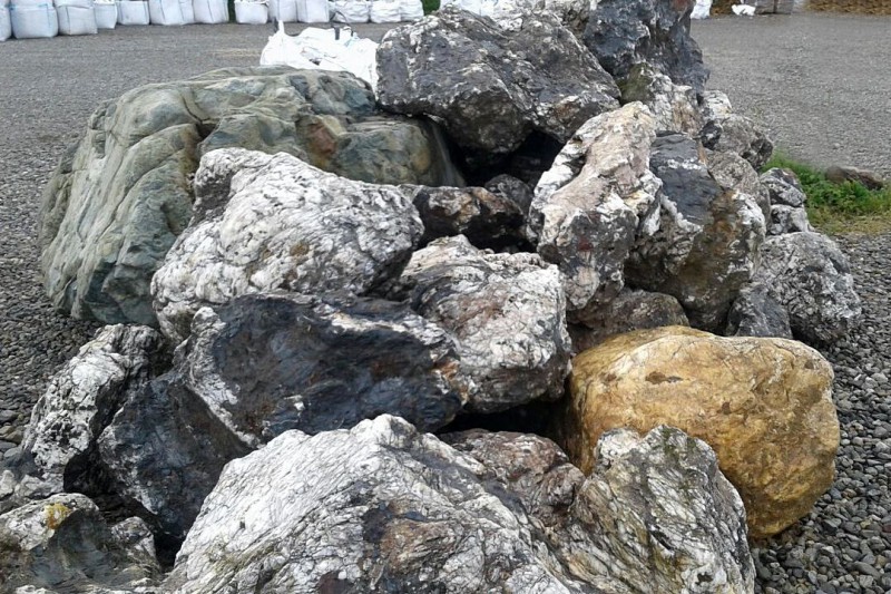 Оттенок или сочетание нескольких расцветок камня определяются типом горной породы. В продаже представлены следующие размеры фракций: 100-300 мм, 100-500 мм, 300-500 мм, 100-1000 мм, 300-1000 мм.